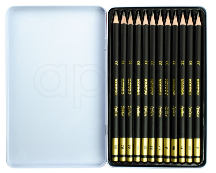 Sada tužek měkké gradace v plechové krabičce. Šestihranné grafitové tužky v dřevěném cedrovém plášti. Pro výtvarníky a umělce ke kresbě.