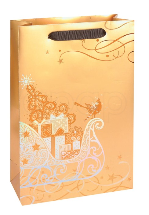 Papírová dárková taška, vánoční motiv, pevné ucho, štítek. Mix designů.