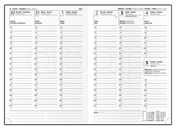 Diář týdenní A5 Oskar ForMen 2026 Stříbrná BTO30-9-26