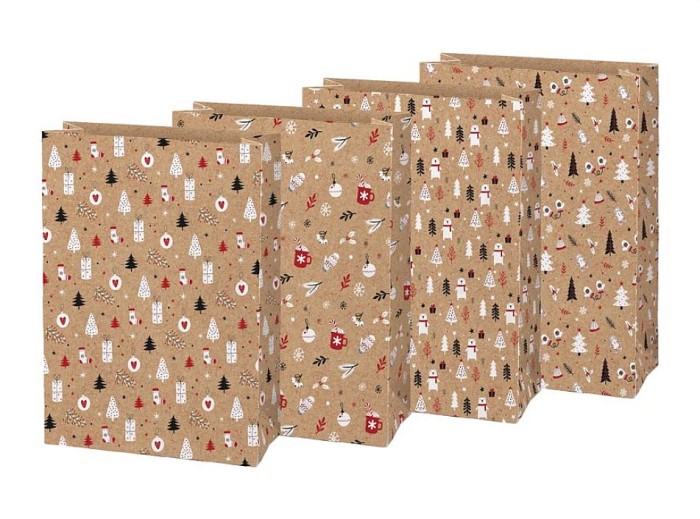 Papírová dárková taška, vánoční motiv, pevné ucho, štítek. Mix designů.