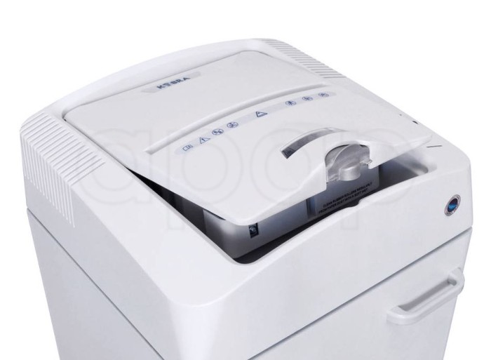 Automatický systém start/stop, zpětný chod, tepelná pojistka motoru proti přehřátí. Signalizace přeplněného koše. Tichý chod stroje. Příležitostně lze skartovat sešívací sponky, kreditní karty a CD - samostatný vstup, separovaný odpad. Kolečka pro snadnou manipulaci.