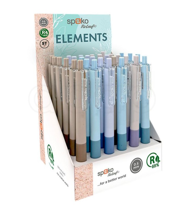 Průhledné plastové tělo, viditelný stav náplně. Uzávěr s klipem. Pogumovaný úchop. Hladké psaní. Pevný plastový obal.
