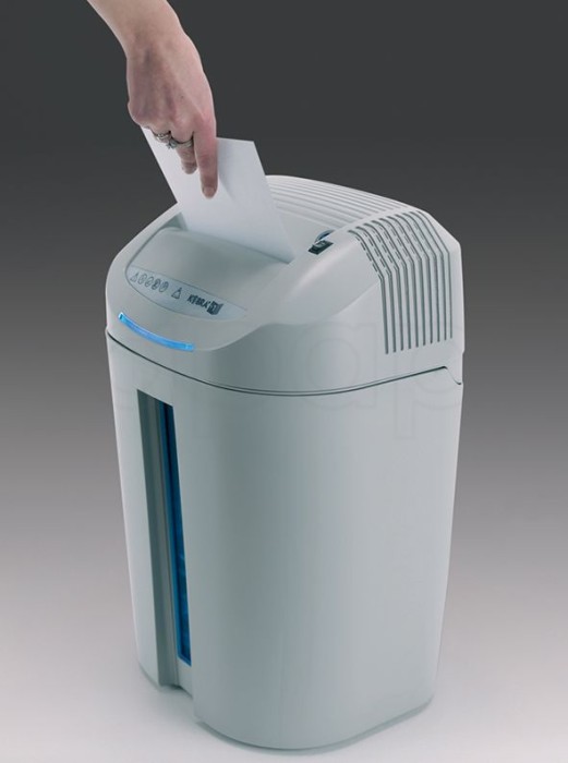 Automatický systém start/stop, zpětný chod, tepelná pojistka motoru proti přehřátí. Signalizace přeplněného koše. Tichý chod stroje. Příležitostně lze skartovat sešívací sponky, kreditní karty a CD - samostatný vstup, separovaný odpad. Kolečka pro snadnou manipulaci.