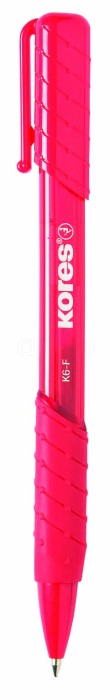 Kores K1. Jednorázová kuličková tužka s transparetním tělem, trojhranného ergonomického tvaru. Barva těla odpovídá barvě náplně. Šíře stopy F-0.5mm. Barva červená.